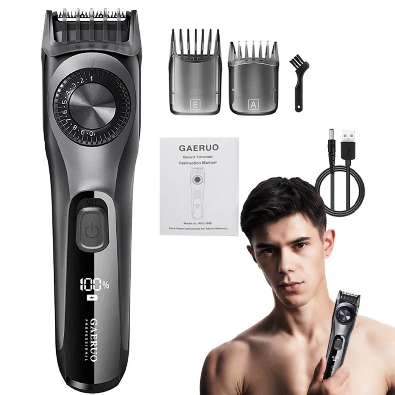 Introducing the ultimate grooming tool for men - the Adjustable Beard Trimmer! This professional-grade trimmer is designed to give you the perfect stubble or beard every time, with its cordless and rechargeable capabilities. With two combs included, you can easily adjust the length of your facial hair to suit your style. The LED display shows you exactly how much battery life is left, and with a usage time of 85 minutes, you'll have plenty of time to perfect your look. The Adjustable Beard Trimmer is also designed with global voltage, so you can take it with you wherever you go. Whether you're a professional stylist or just looking for an easy way to maintain your facial hair, this trimmer is perfect for you. Don't settle for anything less than the best - get the Adjustable Beard Trimmer today!