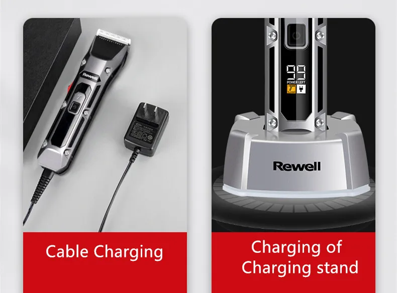 This professional hair clipper is rechargeable and electric, providing you with the flexibility to use it as per your convenience. The power output of this hair clipper is 12W, making it one of the most powerful hair clippers available in the market. The LCD display ensures that you can keep track of the battery level and other important parameters.