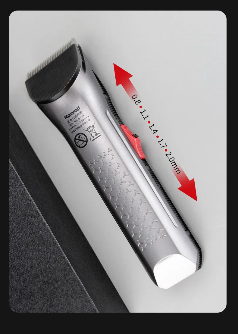 5-gear fine adjustment of cutter head, 0.8mm 1.1mm 1.4mm 1.7mm 2.0mm push-up fine adjustment, accurate hairstyle trimming.