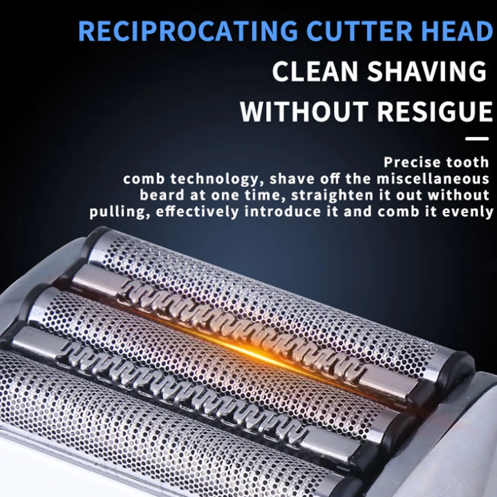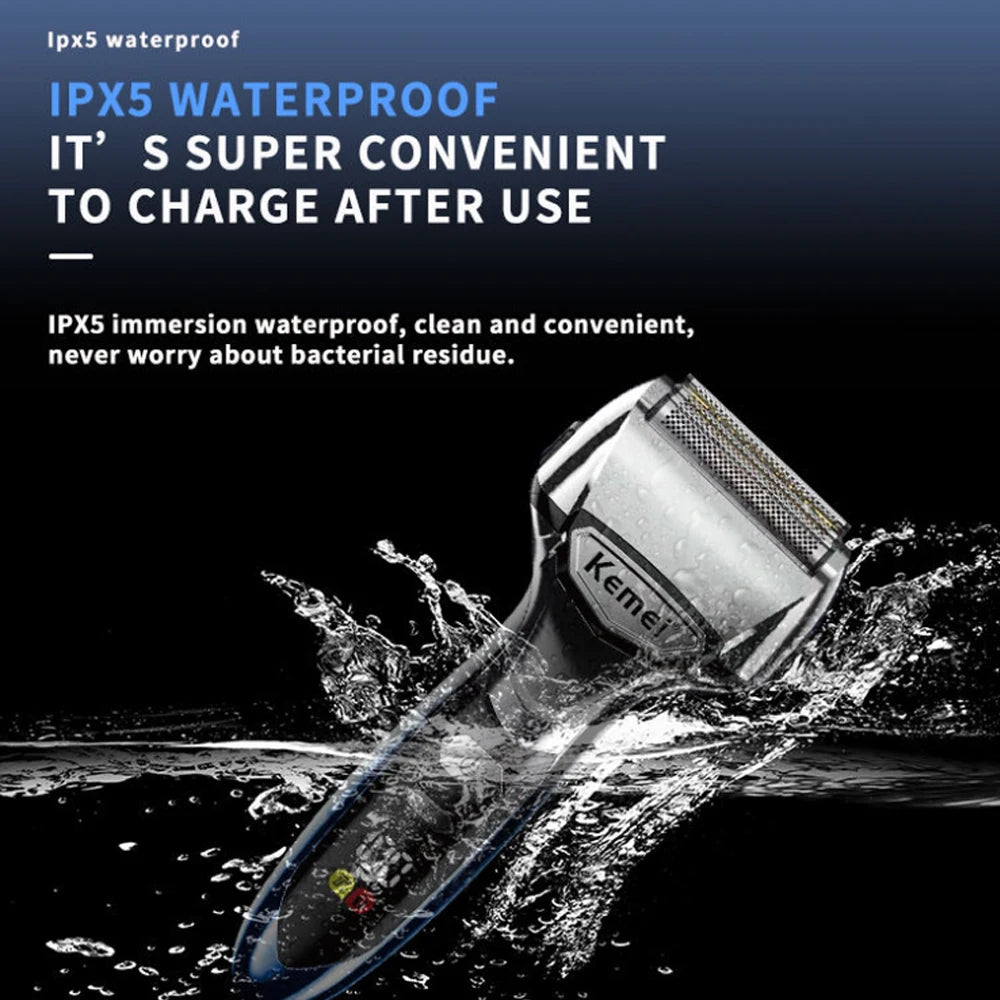 Introducing the Kemei 5-Blades Beard Electric Shaver, the ultimate grooming tool for men who want a close and comfortable shave every time. This innovative electric razor is designed to provide a smooth and precise shave, whether you prefer a wet or dry shave. With five ultra-sharp blades, this shaver can effortlessly glide over your skin, capturing and cutting hairs with ease.