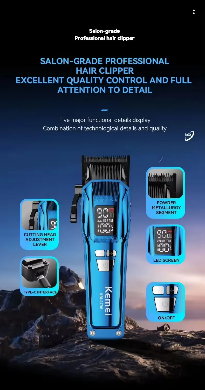 Kemei Hair Trimmer Professional Clippers Brushless Motor 9000 RPM Hair Cut Machine Electric Adjustable Trimmer for Men KM-2796