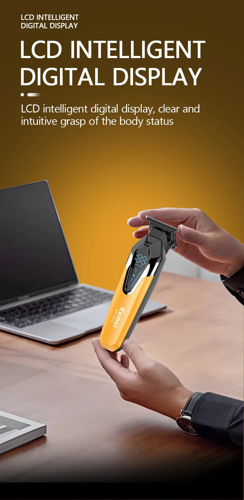 LCD Digital Display: The trimmer boasts an LCD digital display that shows battery life, trimming settings, and other important information, allowing users to monitor and adjust their trimming sessions with ease.