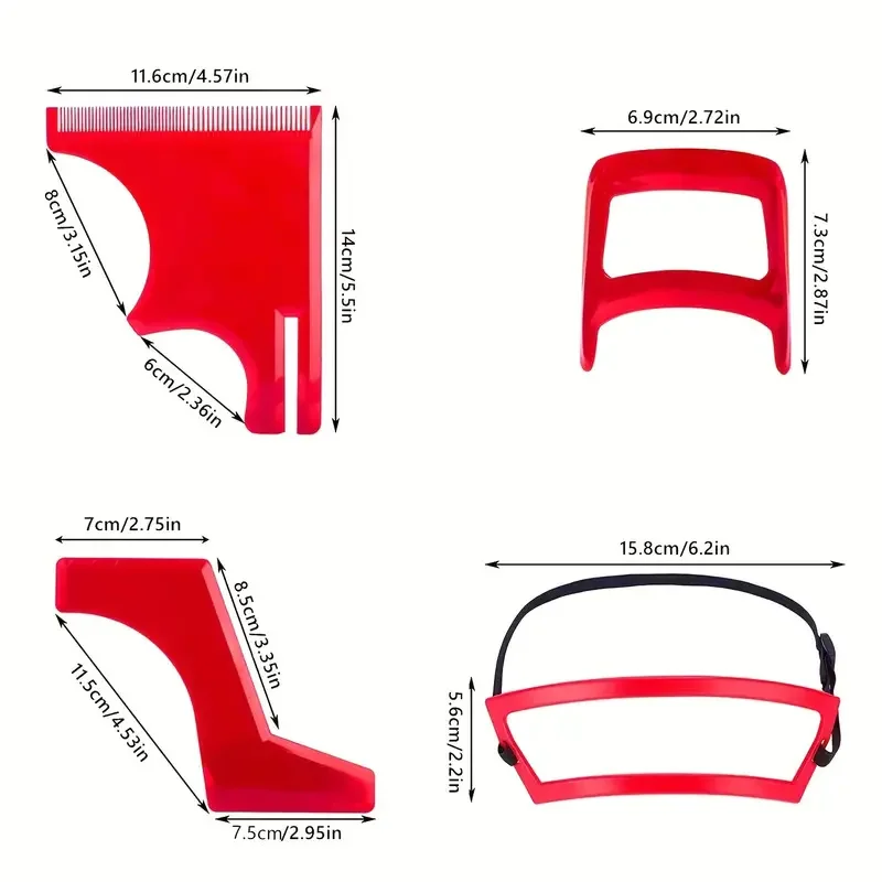 4PCS Men Beard Styling Template Stencil Beard Comb for Men Lightweight and Flexible Fits All-In-One Tool Beard Shaping Tool