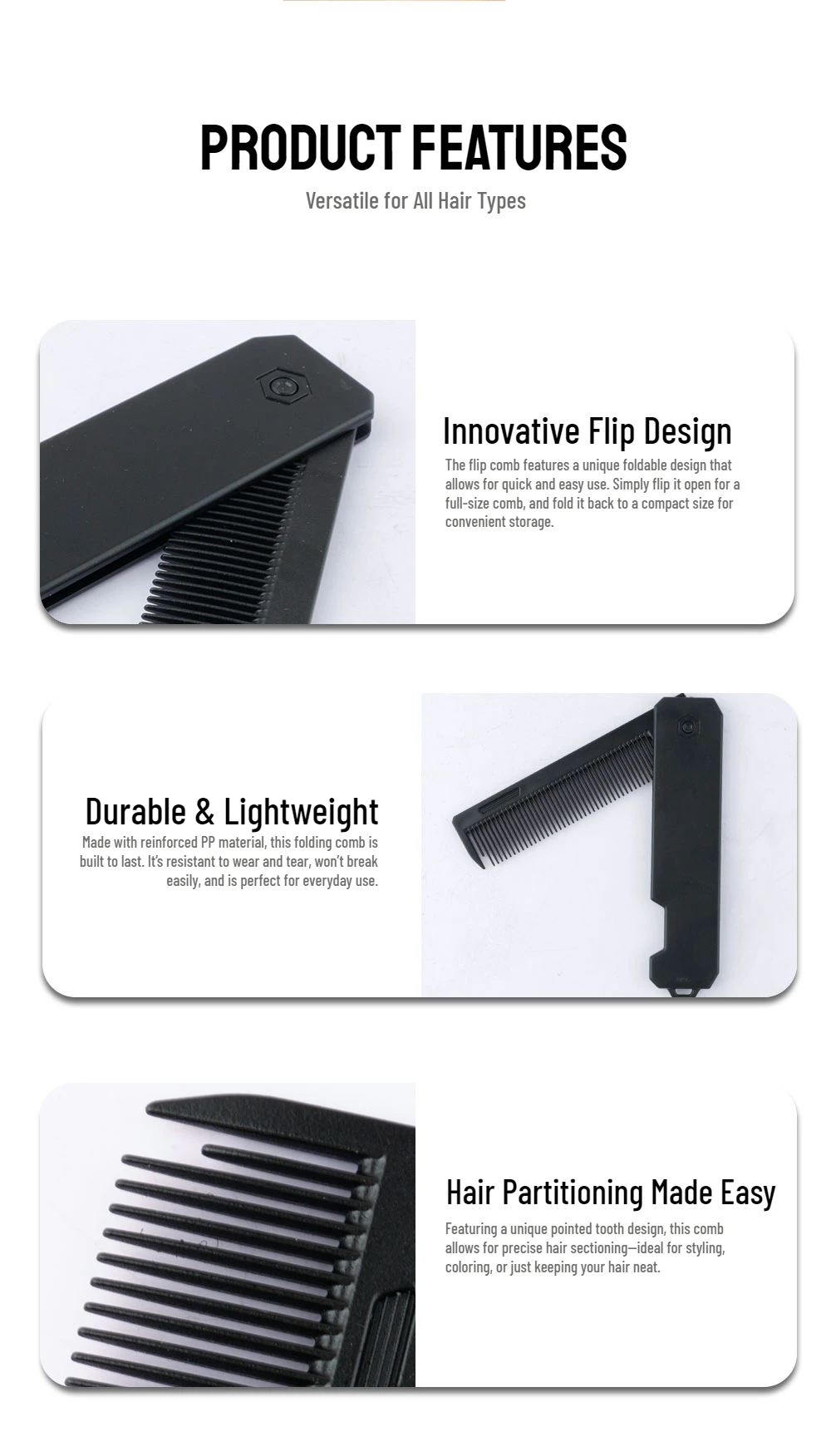 5.Multi functional folding hair comb, used for beard combing, hair cutting, and oil head texture styling