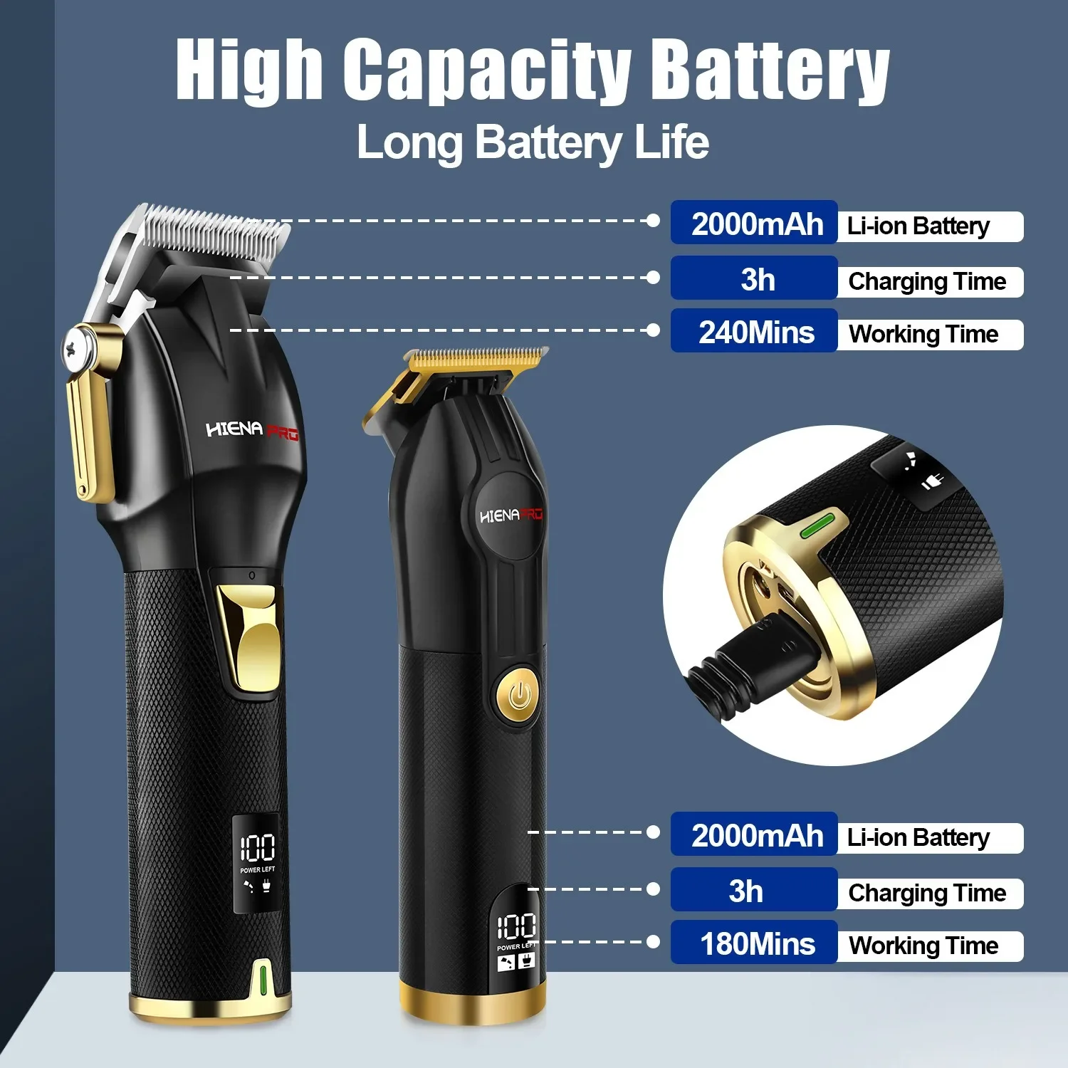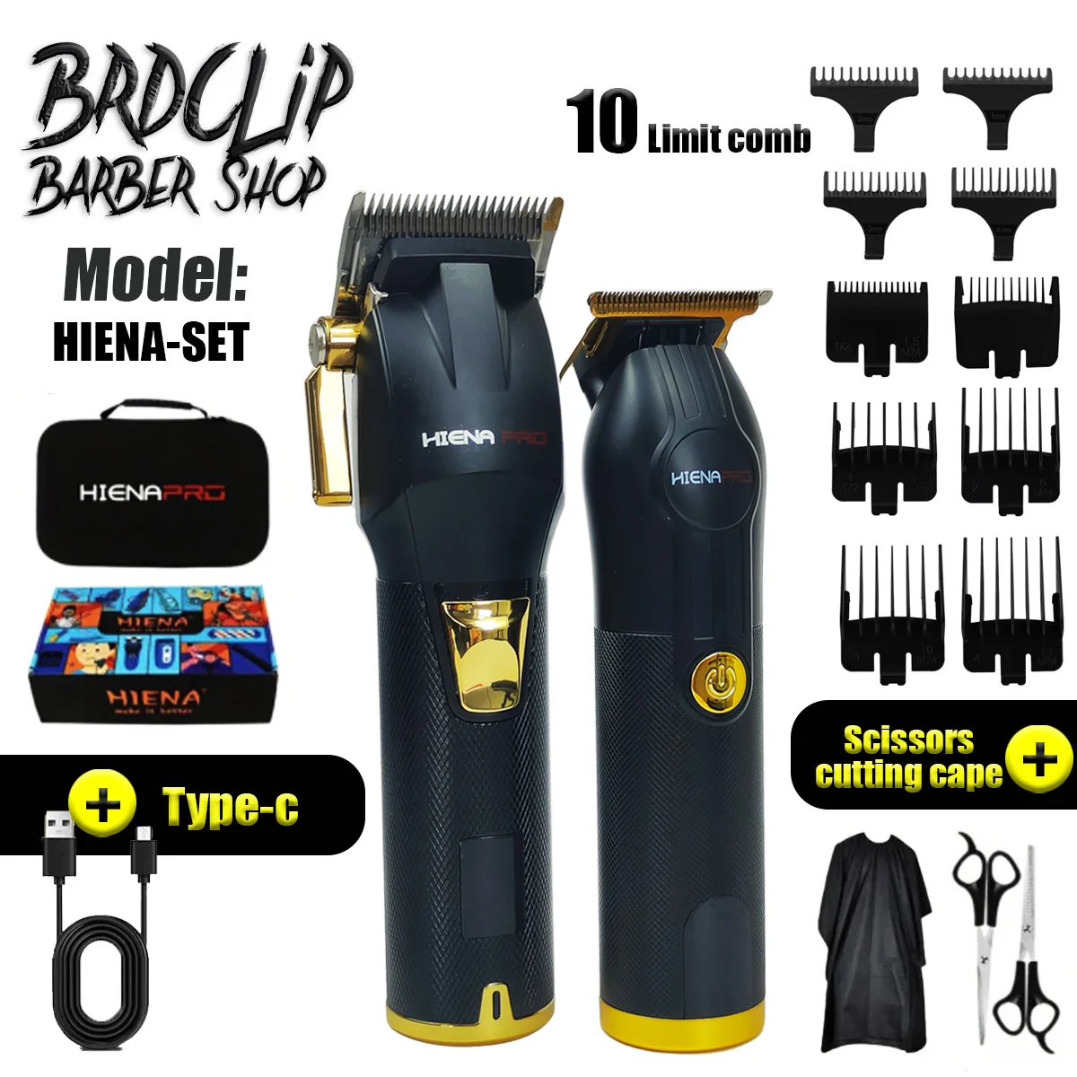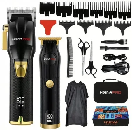Professional 2pcs HIENA-SET Scissors New Professional Hair Clipper Trimmer Engraving Scissors USB Rechargeable Gift Box 2000Ahm