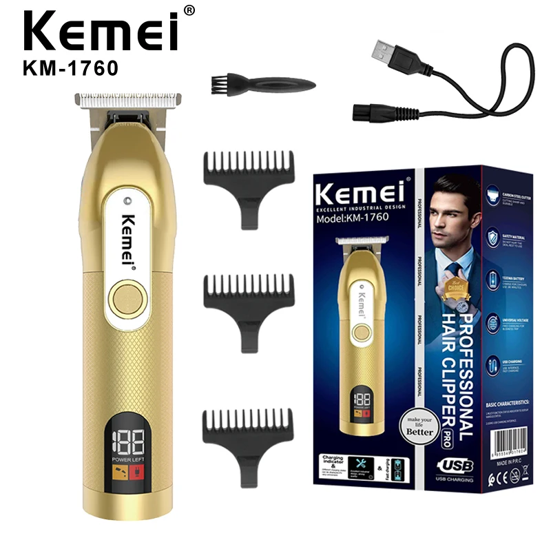 Looking for a professional-grade hair clipper that can handle all your grooming needs? Look no further than our rechargeable barber shop hair clipper! This cordless beard and hair trimmer is perfect for men who want a high-quality electric hair cutting machine that can provide an accurate, precise cut every time. With a global universal voltage range of 100-240V, this trimmer is perfect for use anywhere in the world. Plus, with a usage time of up to 180 minutes and a powerful 10W motor, you can trust that this trimmer will last as long as you need it to. The KM-1760 model number ensures that you're getting a top-of-the-line product, and the carbon steel blades provide a long-lasting, sharp edge that won't dull over time. With a range of limit comb sizes to choose from (1/2/3mm), you can easily customize your haircut to your liking. And with a 1500mAh lithium battery that charges in just 2.5 hours, this trimmer is ready to go whenever you are. So whether you're a professional barber or just looking for a reliable trimmer for at-home use, our rechargeable barber shop hair clipper is the perfect choice for you. Order yours today and experience the difference!