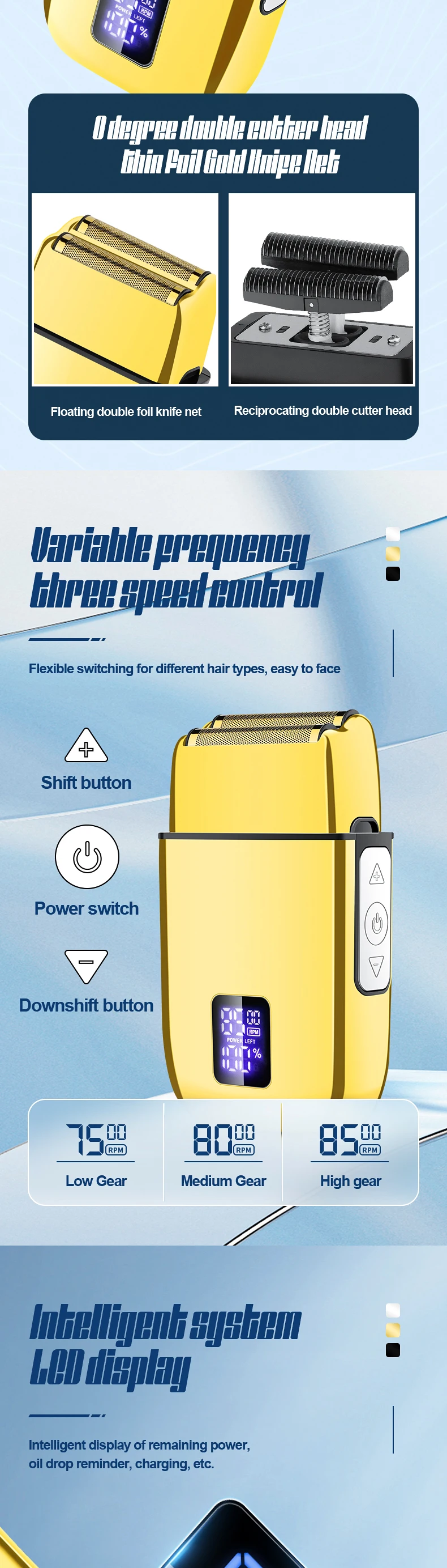 Product features: LCD power display, shaver 3-speed adjustment, metal body