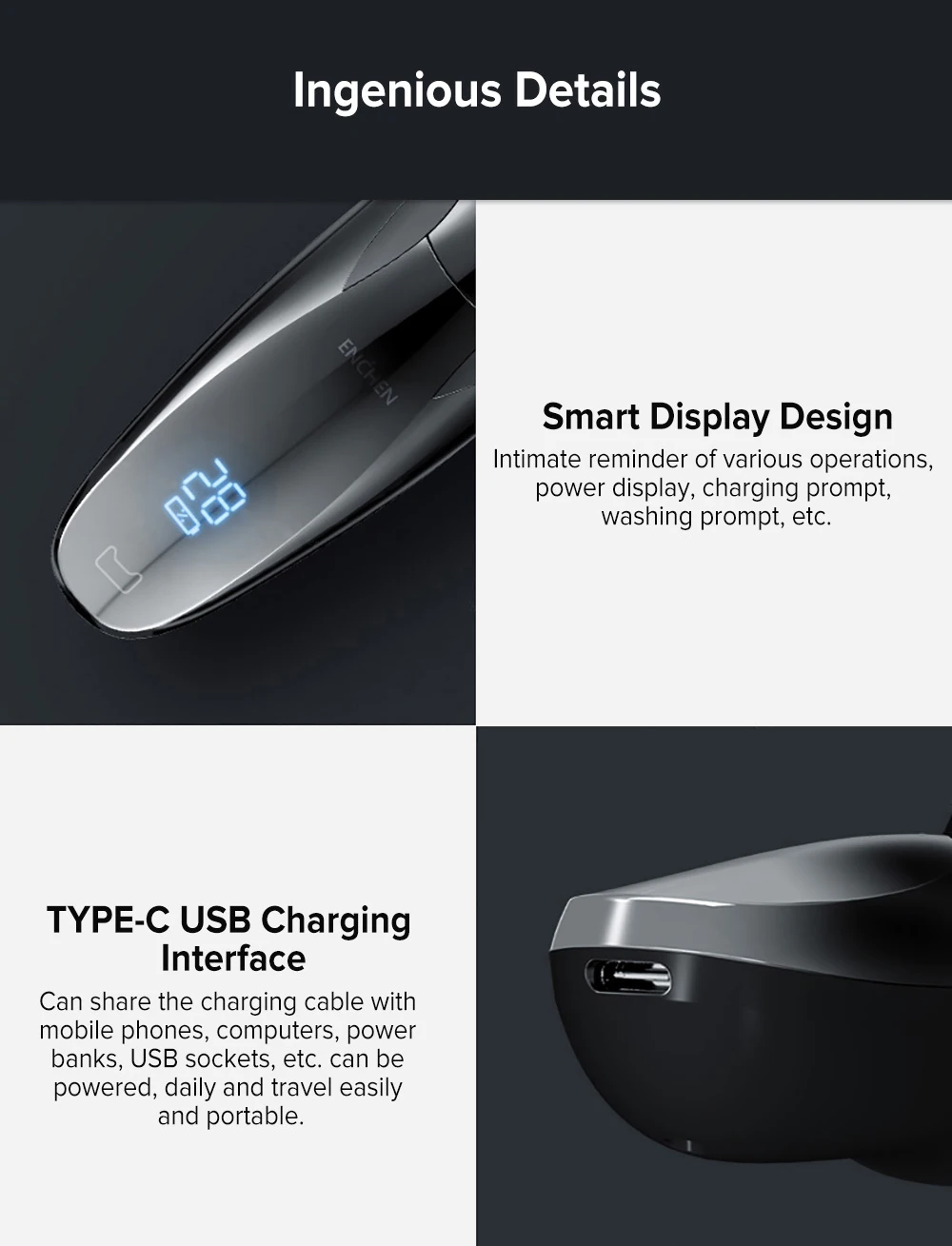 • Feature 1: ENCHEN Electric Shaver