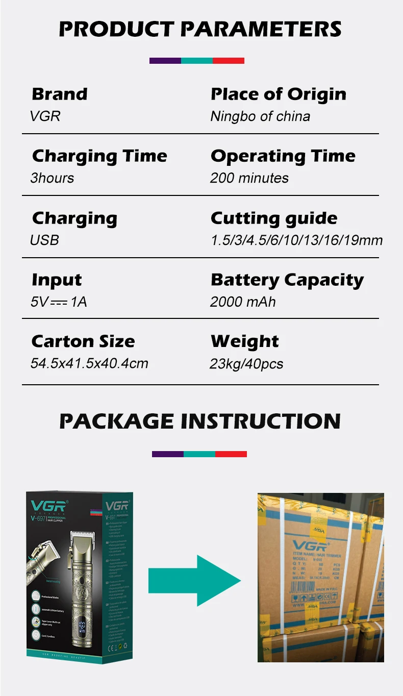 Introducing the VGR Hair Clipper Professional Hair Trimmer LED Display Hair Cutting Machine Adjustable T9 Rechargeable Trimmer for Men V-697. This cutting-edge hair clipper from VGR is packed with innovative features that make it stand out from the rest. Let's dive into what makes this product a must-have for all your hair cutting needs.