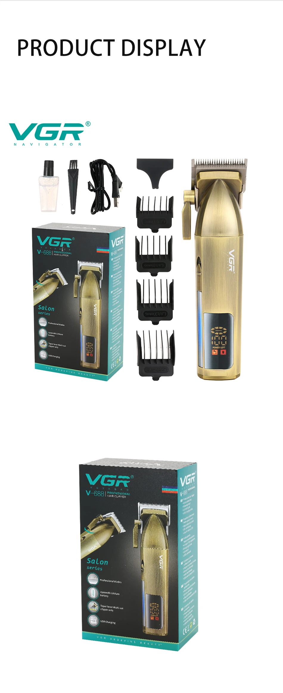 VGR V688 Hair Clipper Professional Personal Care Rechargeable LCD USB Speed Trimmer For Men Barber Haircut Salon Home Vgr 688