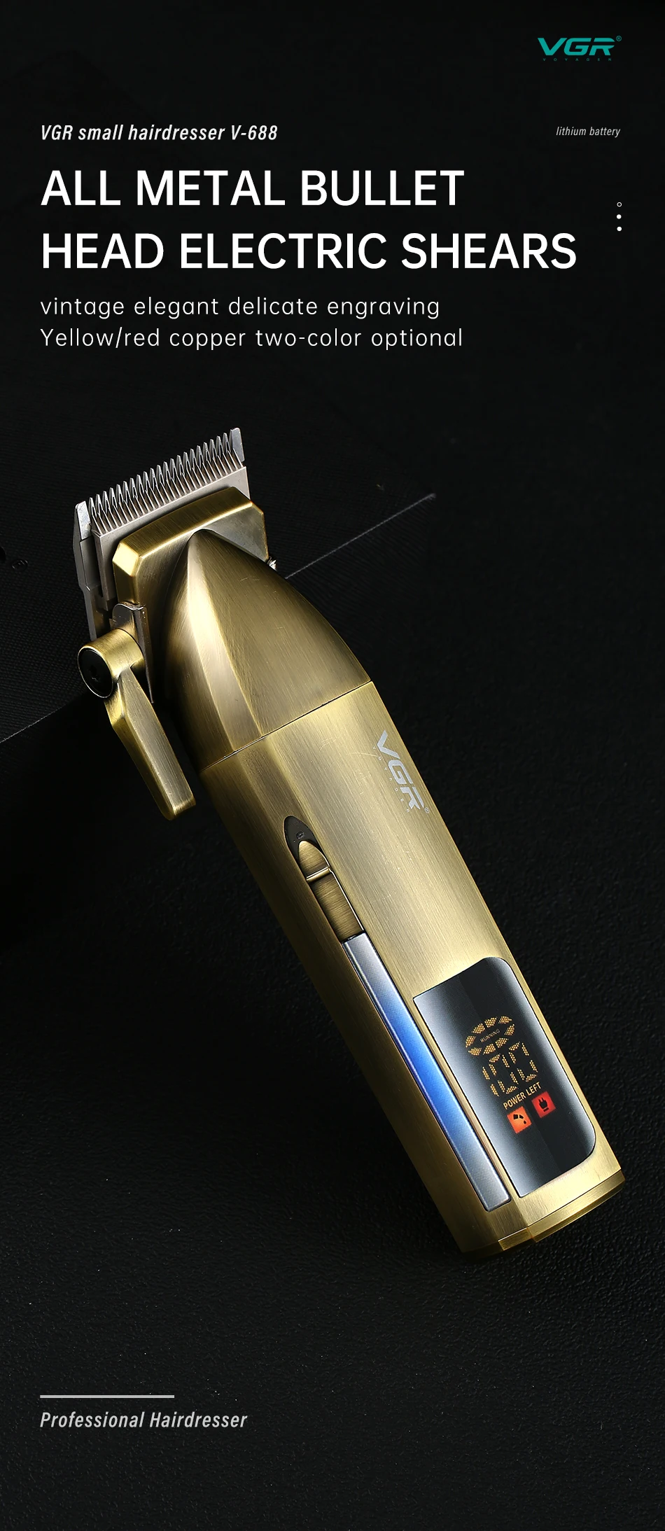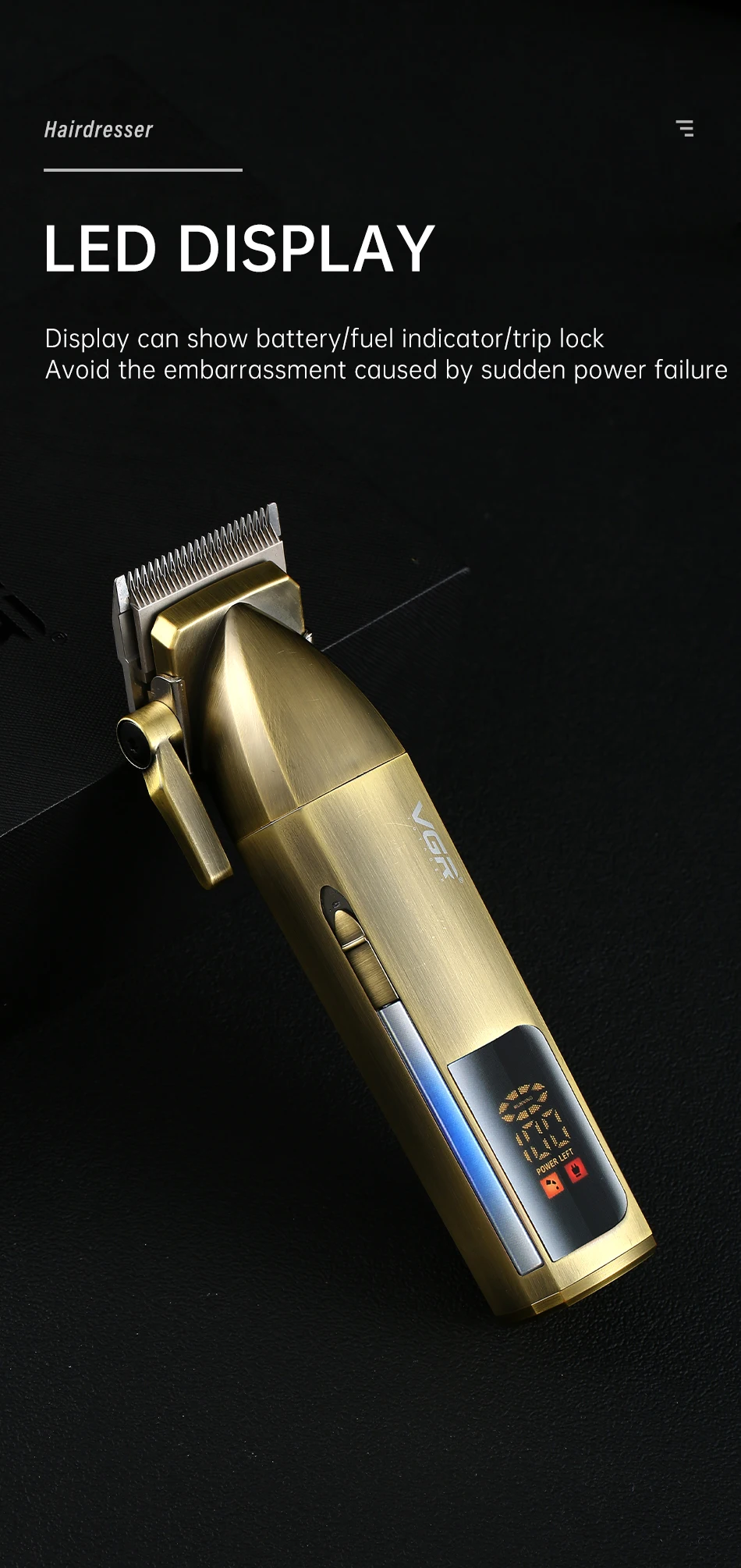 Professional Personal Care Digital Display Variable Speed Trimmer For Men Barber Clippers VGR V688