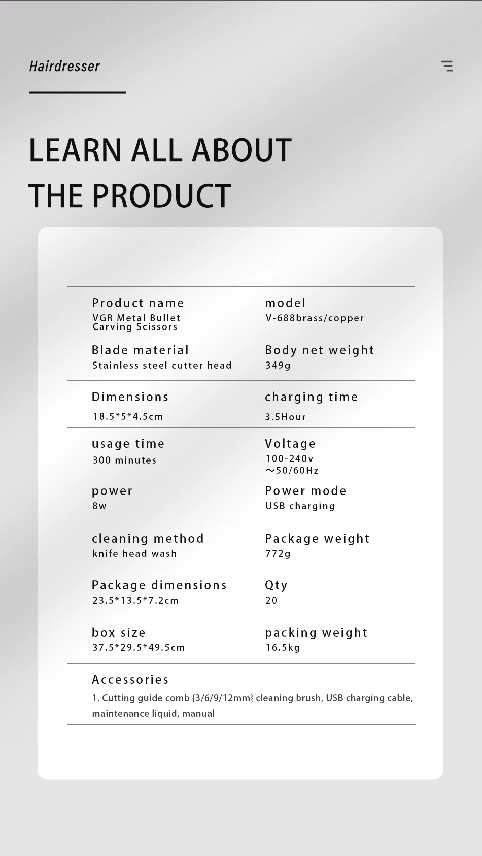 Name: VGR Metal Bullet Oil Head Clipper